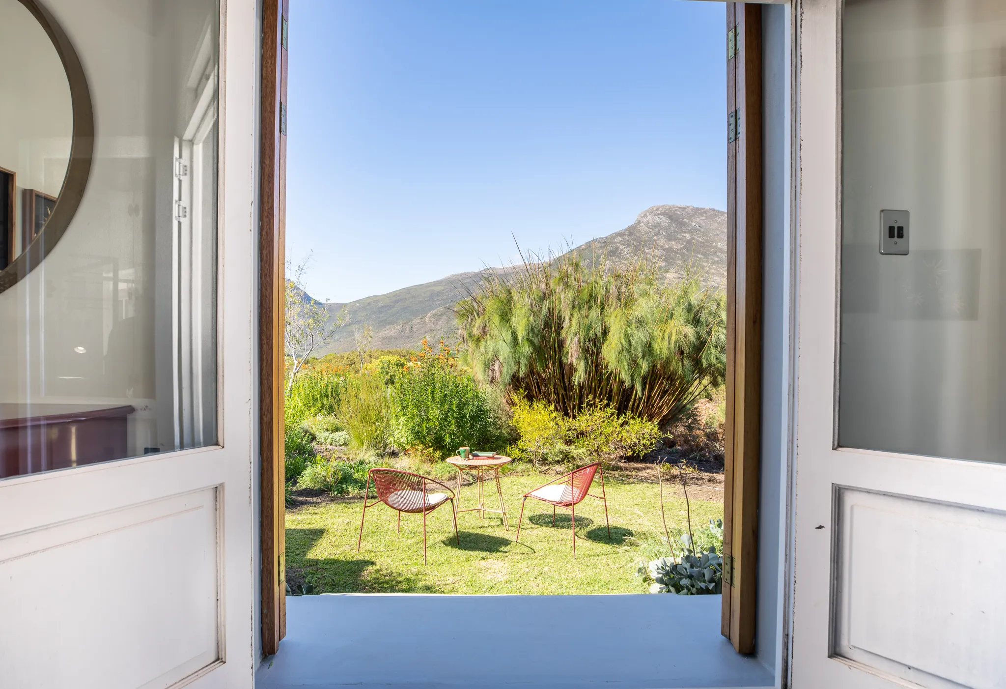 AfrikaansEnglishAdventureBirdingCyclingFloraGourmetHikingHistory & CultureIndigenous Culture / ArtLeisureNatureRelaxationStar GazingWildlifeWine24-hour SecurityBarBarbeque FacilitiesBattery Charging FacilitiesEco FriendlyInternet Access (Complimentary)Kiddies ClubLaundry Service (Available)LibraryMalaria FreeMobile ConnectivityPoolPrivate Vehicle (Available)RestaurantSecure ParkingSpaTV RoomAir ConditioningBalcony / DeckBathClothes PressComplimentary Wi-FiCooking EquipmentCooking FacilitiesDressing GownsElectrical OutletsEn-SuiteFanFireplaceFridgeHair DryerHeated Towel RailsHeaterInternet Access (Complimentary)Iron / Ironing BoardLaundry Service (Available)Lounge AreaOutside ShowerPlunge PoolPrivate Pool / JacuzziPure Cotton LinenSafeSatellite / Cable TelevisionShowerTea / CoffeeTelevisionUnderfloor HeatingVerandahAirport Shuttle (Available)Babysitting ServiceChauffer ServiceCredit Card FacilitiesRoom ServiceRoom Service (24 hours)Bird WatchingCooking CoursesCyclingFine DiningGarden ToursGourmet PicnicHelicopter Scenic FlightsHigh TeaMassagesNight DrivesSleep OutsWalks (Guided)Walks (Self Guided)Wildlife ToursBird WatchingChild Friendly ActivitiesFine DiningGarden ToursHelicopter Scenic FlightsHikingMassagesMountain BikingRock ClimbingWalks (Guided)Walks (Self Guided)Wildlife ToursWine Tasting