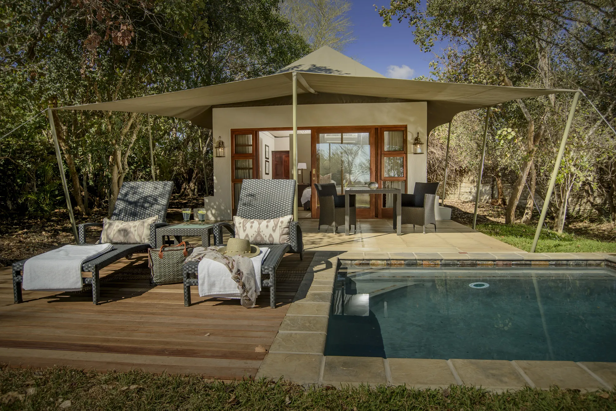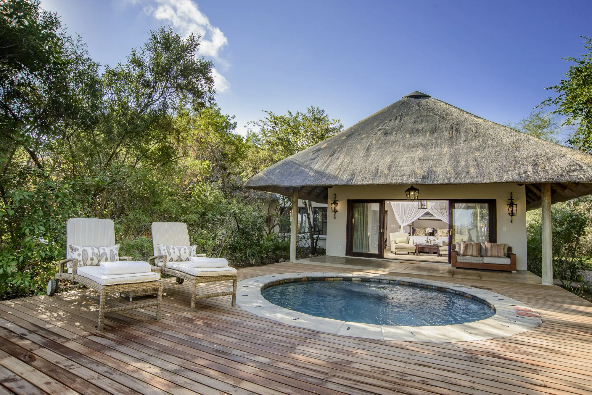 EnglishAdventureBig 5BirdingFloraLeisureNatureRelaxationWildlifeWineAccept Credit CardsAir conditionerBarBarbeque FacilitiesCommunal DiningCredit Card FacilitiesForeign ExchangeGym / Fitness CentreGym on propertyHalaalInternet Access (Complimentary)Kiddies ClubKosherLaundry ServiceLibraryLicensedMeal On RequestMobile ConnectivityOutdoor Pool / Pool DeckParkingPoolPower Generator RestaurantSecure ParkingSmoking SectionVegetarianAir ConditioningBalcony / DeckBath TowelsBathBed LinenComplimentary Wi-FiDisabled RoomsDressing GownsDrinking Water Filtration SystemElectrical OutletsEn Suite BathroomEnsuiteExternal ShowerFanHairdryerHand TowelsInternet Access (Complimentary)Laundry Service (Available)Laundry Service (Complimentary)Mini Bar (Complimentary)Mini BarMosquito NetsOutside ShowerPlunge PoolPrivate Pool / JacuzziPure Cotton LinenQueen BedSafeShowerTea / CoffeeTwin BedVanity CabinetVerandah24-hour SecurityAirport Shuttle (Available)Credit Card FacilitiesDisabilityLaundry Service (Complimentary)Meal on RequestPrivate Vehicle (Available)Big 5Bird WatchingGame DrivesGame ViewingGame WalksMassagesNight DrivesSafarisWalks (Guided)Wildlife ToursAnimal EncountersBig 5Bird WatchingCultural ToursFly FishingGame DrivesGame ViewingGame WalksGeneral SightseeingGolfHelicopter RidesHelicopter Scenic FlightsHikingHorse RidingMountain BikingNight DrivesQuad BikingSafarisScenic FlightsWalks (Guided)Wildlife Tours